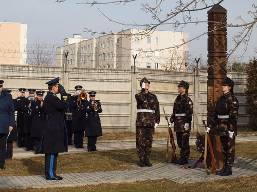 A megemlékezés ünnepi állománygyűléssel kezdődött pénteken, amelyen megjelent Varga Csaba dandártábornok, a Magyar Honvédség Összhaderőnemi Parancsnokság törzsfőnök-helyettese, valamint a városi vezető szervek és a társ fegyveres szervezetek képviselői.