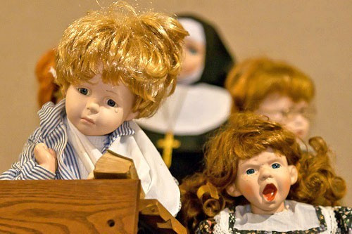 Lakatosné Kositzky Anett elmondta, két évvel ezelőtt is volt egy porcelánbaba kiállítás Marton Erzsébet gyűjteményéből, de a mostani sokkal nagyobb. A tárlaton láthatunk múlt századi babákat, egy egész osztálytermet, varrodát, színházat, kertészetet, kirándulást, német meséből előlépett tündéreket, barokk kori porcelánbabákat és még sok más különlegességet. Minden baba egy-egy történetet mesél el.