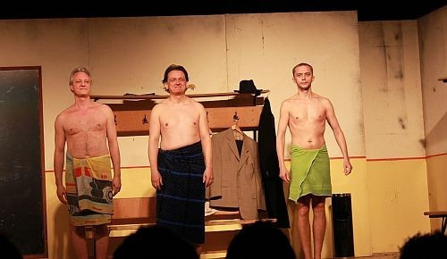 Vígjáték a magyar fociról – áll a Tavaszi Fesztivál plakátján, ez azonban félrevezető. Mint ahogyan láthatóan félre is vezette azt a busznyi középiskolás korú fiút, akiket sejthetően a foci hívószava miatt hoztak el. Bezselézett hajukkal és legtrendibb lilában és rózsaszínben játszó ingeikkel hatalmas távolságra voltak a RETRO Színház színpadán felépített koszos és kopott öltöző lepukkant alakjaitól. (A fiúknál csak az időről időre felcsattanó faszomok, és a fehér fecskealsójára rámarkoló partjelző Sűrített tej van, adj pár percet poénja ült.)