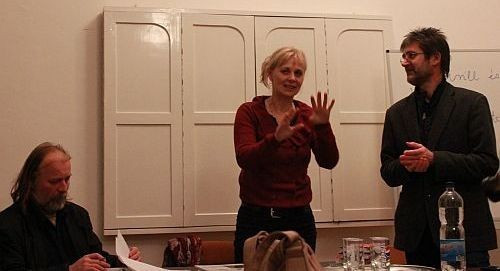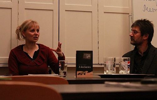 Emlékezetes belépővel indított az írónő; széles gesztusokkal magyarázta a veszprémi utcáknak és útjelzőtábláknak (no meg saját szétszórtságának) köszönhető kis késését – hatásos volt, megadta a beszélgetés alaphangulatát, ezzel is egyből lebontva a nézők és a fellépők közti láthatatlan falat.