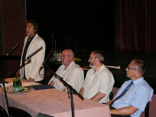 Áldozó Tamás, a megyei önkormányzat képviselője emlékeztetett arra, hogy a kilencvenes években még országos híre volt Veszprém színházénak. Majd jöttek a nehéz évek, a nagy viharok, amik megtörték a színház fényét, ami az utóbbi években komoly aggodalmakra adott okot. Most örülnek annak, úgy tűnik a felelős fenntartó felelős vezetőkre talált. Nyugalom költözött a színházba, így méltón ünnepelhetik a századik évfordulót. A jubileum kapcsán Áldozó elmondta, hogy mélyen a zsebébe kell majd nyúlnia a megyének, de reméli ehhez a Veszprém város önkormányzata is hozzájárul majd. Debreczenyi János erre a lehetőségekhez mérten ígéretet is tett. A polgármester arra is felhívta a figyelmet, hogy a színházkertet haladéktalanul rendbe kell tenni, mert méltatlan a nevére. Ahogy Debreczenyi János fogalmazott, az ocsmány kertmozit már lebontották, most rendezni kell a növényzetet, a világítást és a kerítést. Ez utóbbin már dolgoznak, még az idén teljesen elbontják a fémkerítést és kiépítik a kőből készült újat.