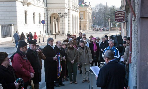 A volt Stingli-vendégfogadó falán elhelyezett emléktábla előtt 1913 márciusa óta tehetjük tiszteletünket. A táblát még a Veszprémi Színpártoló Egyesület helyezett el annak tiszteletére, hogy 1848. március 5-6-án itt szállt meg Petőfi Sándor és felesége – mondta emlékező beszédében Bándi László, a Veszprém Megyei Honismereti Egyesület elnöke. Elhangzott, az irodalomtörténészek szerint többször is járt a nagy költő városunkban. A vadonban című verse alá ő maga írta, hogy „Veszprém 1842”. Petőfi színésztársa, Szuper Károly színiigazgató naplójában ír a költő látogatásáról – idézte fel a múltat Bándi László.