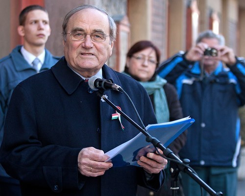– Büszkén mondhatjuk, hogy Veszprém hűen ápolja egyik legnagyobb költőnk emlékét, mivel a Veszprémi Petőfi Színház főbejárata előtt tiszteleghetünk naponta Marton László egészalakos „tarisznyás vándora” előtt, valamint a színház első emeletén üdvözli Melocco Miklós Petőfi szobra az oda látogatókat. Csikász Imre emléktáblája itt egy olyan helyet jelöl, amelyet kötelességünk őrizni. Tekintsük olyan kultuszhelynek, ahová legalább évente érdemes elzarándokolni, vagy erre járván fölpillantani a táblára: értünk is szólt a költő szava – fogalmazott Bándi László.