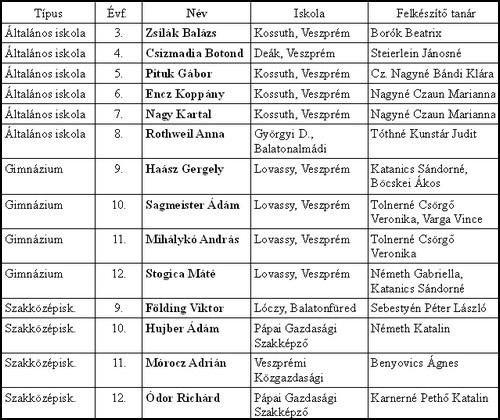 Lóczy, Balatonfüred (szakközépiskolai kategóriában): 9. évfolyamon