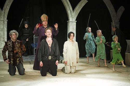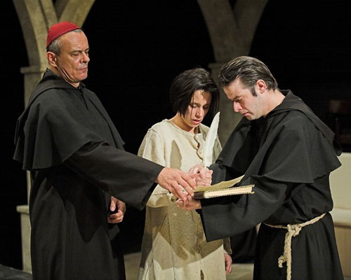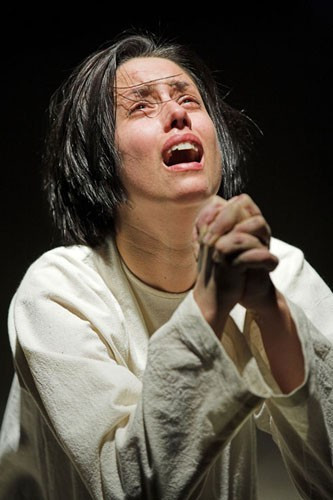 létjogosultsága, ha valóban mondani akarunk valamit a világról, ha zsigeri élményt akarunk szerezni a nézőknek (rendező: Kéri Kitty). Nem érzünk izzadtságszagot mégsem, és nagyra értékelem, hogy Trokán Anna (Jeanne) nem hófehér kezekkel mókázza végig fél lábbal az előadást, hanem jelenetről jelenetre megküzd a szereppel, és előttünk szüli meg a folyamatosan új helyzetbe kerülő lány megpróbáltatásait. Jól működik az előadásban a három oldalról körülülhető tér, tényleg közelebb kerülünk a figurákhoz, muszáj bevonódnunk a játékba – és mindez természetesen történik. Profi világítás és fénnyel való térszervezés; jól megválasztott, okosan alkalmazott zenék jellemzik a produkciót. Jelzésszerű és atmoszférateremtő a díszlet (félbetört boltívek, törött rózsaablak).