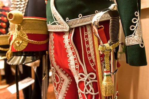 A honfoglalás korától napjainkig tartó időszak katonai díszegyenruháiból válogatott össze szép kollekciót Tóth István és Tatai Tamás. A veszprémi Méretes Szabóság honvédelmi érdemérmes alkotói a számos rendkívül igényesen kidolgozott katonai viselet mellett csodálatos női díszruhákat is bemutattak a tárlaton.