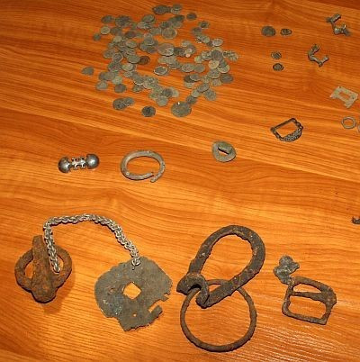 Állampolgári bejelentés alapján indult a múlt héten eljárás ismeretlen tettes ellen, akit Mencshely környékén fémkeresővel és ásóval felszerelkezve láttak. A Veszprémi Rendőrkapitányság nyomozói széleskörű adatgyűjtést végeztek az ügyben, ennek során eljutottak egy nyirádi férfihoz. Tegnap a nyomozók házkutatást végeztek a férfi házában. Egy teásdobozban 124 fémpénzt találtak, illetve előkerült egy ezüst övveret, egy bronzból készült gyermek karkötő, ruhadíszek és egyéb használati tárgyak. A szaktanácsadóként az eljárásba bevont két régész a helyszínen megállapította, hogy nagy valószínűséggel római kori leletekről van szó. A férfi autójából előkerült a gyanú szerint a „kincskereséshez” használt fémdetektor és ásó.