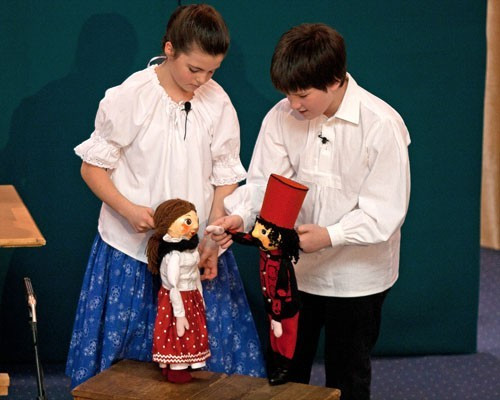 Először a Napsugár Bábcsoport, a Simonyi iskola növendékei mutatták meg tudásukat a Háry János című bábjátékban. Felkészítőjük, Fodor Csabáné már 18 éve bábozik, most úgy gondolta, egyfajta összművészeti előadást állít színpadra. A bábjátékon kívül tánc és énekes elemek is voltak a darabban. A kellékeket általában az iskolában készítik, idén egy bábkészítő alkotta meg a Háry János „szereplőit”.
