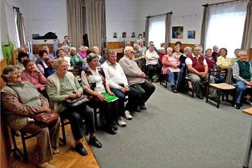 A nyugdíjas klub ismertetőjét követően a polgármester szólt a megjelentekhez. – Nem az a fontos, hogy én mit mondok, arra vagyok kíváncsi, önök hogyan látják a városban zajló életet, a párbeszéden van a hangsúly – kezdte gondolatát Porga Gyula. Ezt követően a városi költségvetés részleteit ismertette, amit egy családi kasszához hasonlított. Mint mondta, a bevételekhez kell igazítani a kiadásokat, az önkormányzatok azonban egyre nehezebb helyzetben vannak, hiszen fokozatosan csökken a központi költségvetésből befolyó összeg. Ennek eredménye, hogy már nem csak fejlesztésre, hanem működésre is hitelt kell felvenni. Kiemelte, éppen ezért első számú feladat, hogy az intézményrendszert átvizsgálva csökkentsék az ilyen jellegű kiadásokat. Vannak azonban nem kötelezően támogatott területek is, ilyen többek között a sport, a rendezvényszervezés, vagy éppen a nyugdíjas klubok. Ez utóbbiak működéséhez egyébként évente kétmillió forinttal járul hozzá az önkormányzat. Minderre azért költenek, hogy a veszprémiek jobban érezzék magukat – hangsúlyozta. Elhangzott, a megyeszékhelyen mintegy 16 ezer nyugdíjas él, ebből 4–5 ezer tagja valamilyen klubnak.