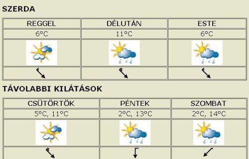 Szerdán a hosszabb, rövidebb napos időszakok mellett többször beborul az ég, záporra is készülhetünk. Erős marad az északnyugati szél. A hőmérséklet reggel 6°C, délután 11°C körül lesz.