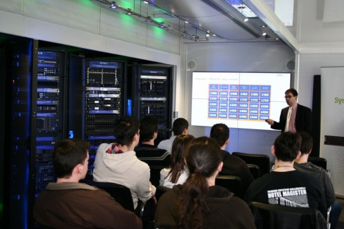 A Pannon Egyetem Műszaki Informatikai Kara több területen együttműködik a neves informatikai világcéggel, a közelmúltban alapítottak kutató központot, azóta is szinte mindennapos a közös munka. A kamion a fejlesztések gyakorlati hátterét hozta el Veszprémbe. A hallgatóknak nemcsak a legújabb technológiákat mutatták be, hanem a fejlesztésekben is részt vehettek, ezzel alapozzák meg jövőjüket, hangsúlyozta Dr. Friedler Ferenc dékán köszöntőjében.