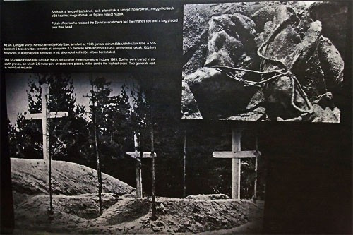1990 óta tudja a világ, hogy a szovjetek 1940 áprilisában és májusában mintegy 22 000 lengyel hivatásos és tartalékos katonatisztet végeztek ki. Tudjuk, tisztában vagyunk a cselekedet borzalmával, de a részleteket csak részben ismerjük. A mostani veszprémi kiállítás anyaga 16 tablón követi végig a két világháború közötti Lengyelország történetét, Lengyelország 1939-es elbukását (a németek és a szovjetek ellen), a katyn-i mészárlást, lengyelek százezreinek deportálását, és a katyn-i gyilkosság körüli hazugságokat és titkolózásokat.
