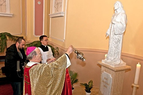 Rendkívüli időpontban, szombat koradélután találkozott a Szent Margit plébánia gyülekezete, hogy köszöntsék Jézus szentséges szívének szobrát, melyet carrarai márványból Reiger Tibor szobrászművész faragott ki, Fáskerti István és Iványi Csaba kőfaragó mesterek hathatós segítségével.