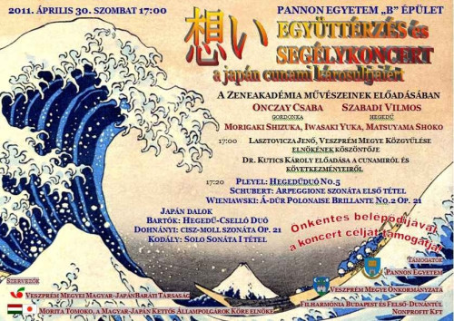 Veszprém is adni szeretne, így a Veszprém Megyei Önkormányzat és a Pannon Egyetem támogatásával, a Veszprém Megyei Magyar – Japán Baráti Társaság szervezésében „Együttérzés és Segélykoncert a japán cunami károsultjaiért” rendezvényre kerül sor a veszprémi Pannon egyetem "B" épületének aulájában.