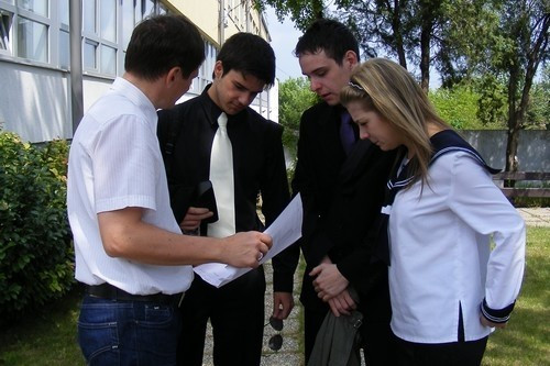 A tanulók nagy része az utolsó pillanatig írta a matematika érettségi feladatsort a Lovassy László Gimnáziumban, 11 órakor azonban megkönnyebbült fiatalok lepték el az intézmény bejáratát: végeztek a közép szintű vizsgával. Azonnal megkezdődött a kérdések elemzése, sokan örömmel fogadták, hogy másokéval azonos végeredményt írtak le, ám volt, aki magabiztosan állt fel a padból, de a számokat hallva elbizonytalanodott.