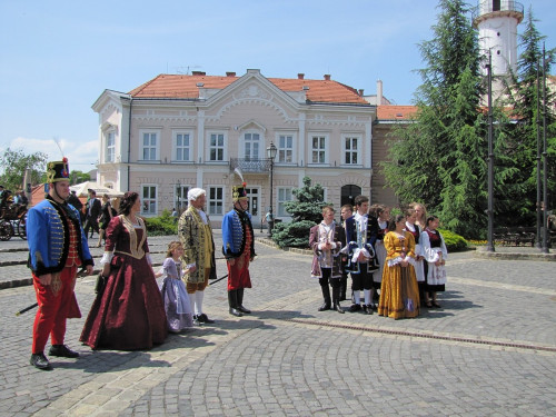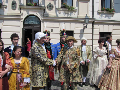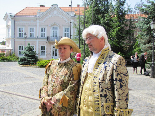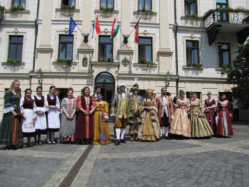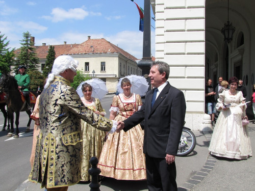A városházán Porga Gyula polgármester korhű öltözetbe bújva köszöntötte a delegáció tagjait, a veszprémiek még udvari zenészről is gondoskodtak.