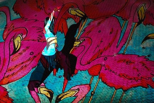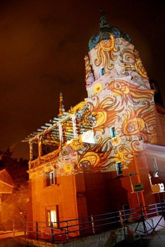 Ezzel párhuzamosan Szepesi Imre maga által válogatott jazz zenére vetítette be a könyvtár belső udvarát: a falakat, a földet egyaránt, miközben Horváth Csilla adott elő tánc improvizációkat.