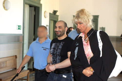 Sztojka Ivánt, a Cozma-gyilkosság harmadrendű vádlottját ügyvédje társaságában elővezetik a per tárgyalására a Veszprém Megyei Bíróságon