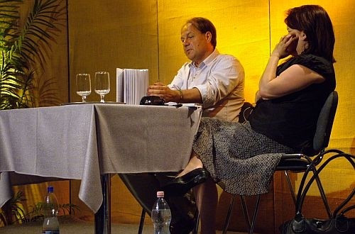 A beszélgetés kellemesen csipkelődő, finom cinizmussal meghintett hangulatban zajlott, Kőrösi visszatérő reakciója a felvetett kérdésekre általában ez volt: „nem értek egyet a kérdéssel”. Aztán persze csak válaszolt a fölvetésekre – de olyan is megesett, hogy teljesen másról kezdett mesélni. Ha „nem jött volna le”, hogy Csapody Kinga és Kőrösi Zoltán régről ismerik egymást, bizony kellemetlen is lehetett volna a helyzet, de így jókat derült a publikum, és alig várta az új kérdést, amibe beleköthetett az író. Csapody Kinga becsületére legyen mondva, vitézül állta az „ütéseket”.