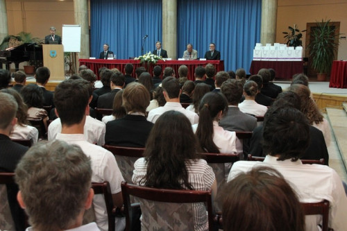 A tehetséggondozás fontosságát hangsúlyozta köszöntőjében Némedi Lajos, Veszprém alpolgármestere, a hazának nagy szüksége van az ifjú tudósokra, mondta. Példaként felelevenítette az iskola névadójának, „a matematika Mozartjának” életútját, aki problémafelvetésével és megoldásaival vált világhírűvé már fiatalon. Dr. Friedler Ferenc, a Műszaki Informatikai Kar dékánja arra biztatta a diákokat, hogy legyenek a legjobbak abban, amit csinálnak, az értékorientált munka és szakmai pálya fontosságát hangsúlyozta, melynek eredménye hosszú távú elismerés. A kiváló együttműködés példája az iskola, mely már 10 éve működik sikeresen, egyre több tehetséges diák jelentkezik a veszprémi és szolnoki központokba. Ebben a tanévben mintegy 200 diák fejlesztette tudását a foglalkozásokon. Dr. Pintér Ferenc, az iskola igazgatója a kezdetekre emlékezett, felelevenítette az országosan egyedülálló oktatási hálózat kialakulását, majd köszönetet mondott a tudást megalapozó középiskoláknak.