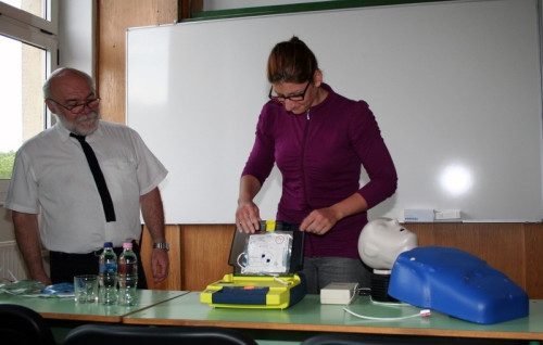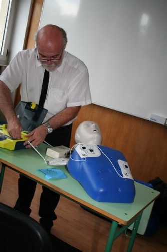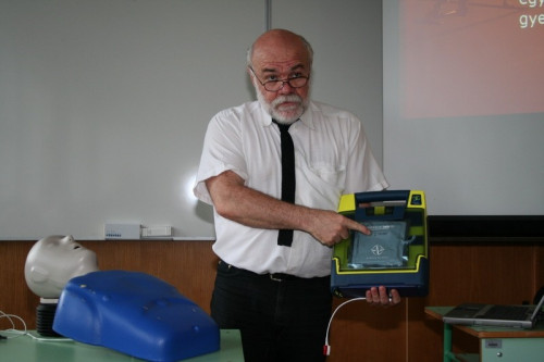 A tanfolyamon, melyet Ősz Gyula, az Innomed szakembere tartott, elméleti és gyakorlati ismeretekkel gazdagodott a 33 résztvevő. Az élettani tudnivalók mellett megismerkedtek az újraélesztés és defibrillálás folyamatával, gyakorlati teendőikkel, a fibrilláció külső jeleinek felismerésével és kezelésével. Fontos, hogy percenként 7-10%-kal csökken a siker esélye, az ember képes az újraélesztésre, nem a készülék, az csak javítja annak hatásfokát, segítséget nyújt használójának, hogy a rendelkezésre álló mintegy öt percben károsodás nélkül tudjon új esélyt adni az életre.