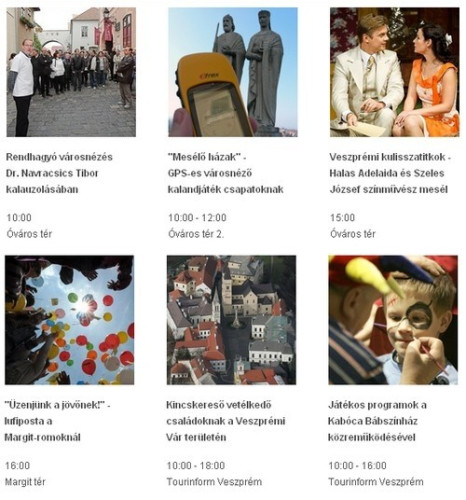 16 órakor lufipostát engedhetnek útnak a látogatók a Margit-romoknál. Ezen kívül lesz GPS-es városnéző kalandjáték, kincskereső vetélkedő, valamint játékos programok a Kabóca Bábszínház közreműködésével második veszprémi Turizmus nap részeként.