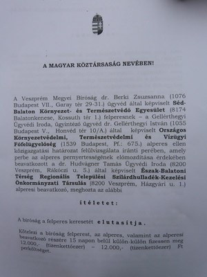 Korábban a Séd-Balaton Természet- és Környezetvédő Egyesület a médiában azt nyilatkozta, hogy ha kell kifogásaikkal Brüssel-ig is készek elmenni. Most 60 napjuk van, hogy felülvizsgálati kérelemmel éljenek, amúgy ezen másodfokú ítélet végleges és jogerős. Czaun és Tasnádi azt mondják, nem hinnék, hogy egy esetleges feljebbviteli eljárásban a Legfelsőbb Bíróság megváltoztatná a most született ítéletet. Amilyen gyorsan csak lehet, folytatni kell a munkát, mert egyetlen perc vesztegetni való idő sincs, - fogalmazott Czaun János.