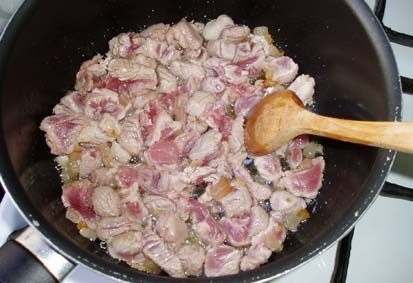 Megpörköltem rajta 20 dkg vagdalt tarját.