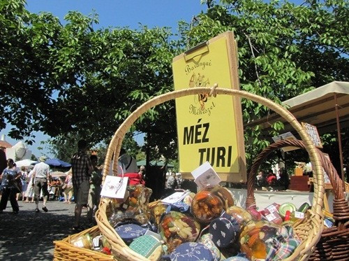 Baranyai Zoltán mézpalackozó minden veszprémi rendezvényre eljön, hogy a főzött technikával készült ízesített mézét megkóstoltassa. Mindemellett a mézturkálóban díszes üvegekbe töltött aszalt gyümölcsös és magvas finomságokra lehetett szert tenni. Azért azt is megtudtuk, hogy az akác-, a hárs- és a gesztenyeméz a legfinomabb.