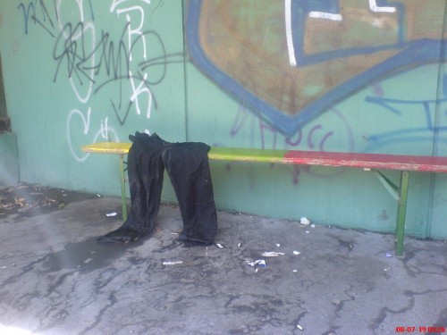 Abban az épületben emberek dolgoznak, gyermekek töltik szabadidejüket, és ami a legfontosabb talán, belakják, és szeretik az ott működő színházat. Azonban egy-egy „mulatósabb“ éjszaka után nem lehet az épület körül megmaradni, mert a törött sörösüvegek és flakonok tengere, a terjengő, meg nem szűnő vizelet, és egyéb biológiai folyamatok végtermékének elviselhetetlen szagának elegye, és a szeméttenger megakadájoz minden emberi tevékenységet. A küzdelem ugyan véget nem érő, de keserű is egyúttal, hiszen a szinészek, gyerekszereplők próbálják némileg tisztán tartani a környéket, sajnos a legkevesebb sikerrel.