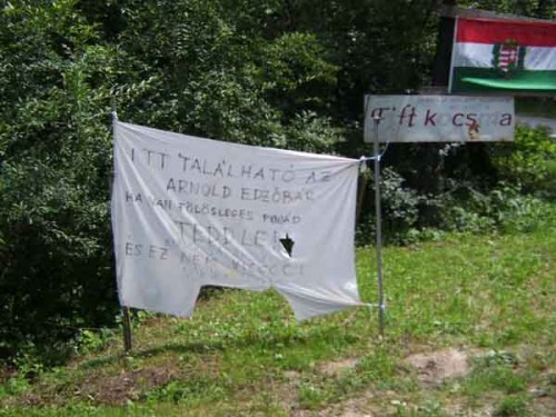 transzparensek tűnnek elő a semmiből: „Itt épül Európa”, „Fifi kocsma”, vagy „Itt