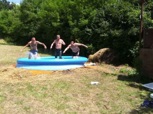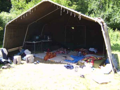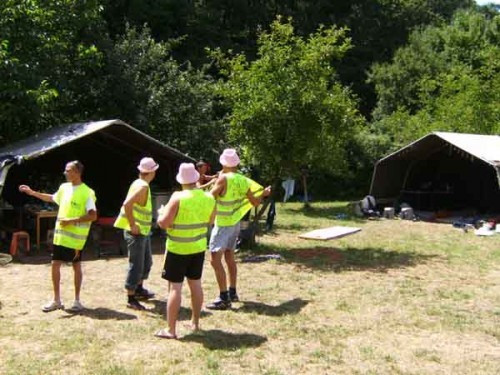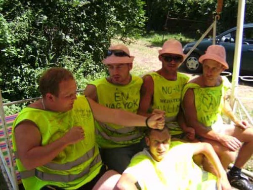 Az út mellett elegánsan berendezett fogadó, innen integetnek az autósoknak. De ha a bokrok mögé pillantunk egy komfortosan felszerelt kis tábor tárul elénk. Igaz nincs az a pompa, mint a sokcsillagos szállodákban, de nekik ez is megteszi. Van itt zuhanyzó, konyha, hálószoba, sőt még amolyan maguk fabrikálta Jakuzzi is. A szervezőknek, vagy házigazdáknak persze egyenruha is dukál. Sára láthatósági mellény és rózsaszín kalap. Így könnyen felismerik őket. Úgy tudjuk hétvégén rendesen megnő erre felé a forgalom, és a rendezvény szervezői nem fukarkodnak, bárkit szívesen vendégül látnak a „mini Woodstock-on”.