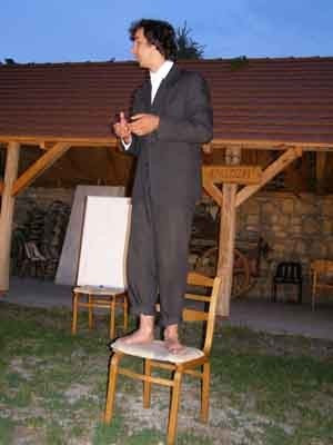 A fiatal veszprémi színész, aki mellesleg a Pannon Egyetem Színháztörténet szakának végzős hallgatója maga választotta ki Platón művét, s a monodrámával járja az országot. A Vehírnek elmondta, hogy már középiskolás korában közel állt hozzá Szókratész védőbeszéde, és akkor eldöntötte, egyszer színpadra viszi. Most bár van társulata, ő saját maga rendezője, díszlettervezője, sőt dramaturgja is. A Forrásszínházban töltött néhány év után a közelmúltban megszerezte a színész II. szakképesítést. Még három év a színpadon, s utána, ha sikeresen vizsgázik a bírálóbizottság előtt, diplomás, végzett színművész lehet. Ez a rögösebb út, de több munkával és több tapasztalati lehetőséggel is jár – mondta Ács Tamás. Bár még szemtelenül fiatal, életét már most nem tudja színház nélkül elképzelni, de egyelőre nincs a tervei között, hogy tovább álljon. A Forrásszínház egy professzionális és dinamikus társulat, - vallja.