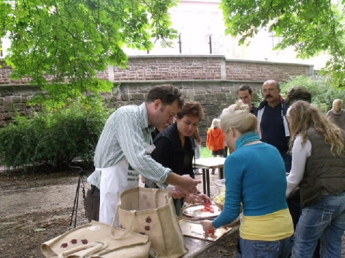 Az érdeklődők megízlelhetik a színészek által készített ételeket - így Oberfrank Pál igazgató lecsóját is - közben pedig zenés műsorokkal kedveskednek nekik a művészek és a meghívott fellépők. Érkezik a tordasi Szivárvány együttes, fellép Petrik Péter és a Melody, ellátogat Veszprémbe a két népszerű fővárosi színészzenekar, a Cserna Antal vezette Harmadik figyelmeztetés és a Fesztbaum Béla nevével fémjelzett Könnyű Esti Sértés. Meglepetés produkcióval lépnek színpadra a Petőfi Színház dívái, a napot pedig színházi utcabál zárja.