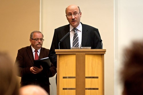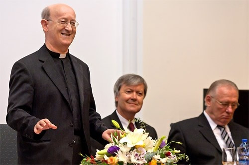– A Pannon Egyetem és az Érseki Hittudományi Főiskola partnersége mellett remélem, hogy a főiskola és a Modern Filológiai és Társadalomtudományi Kar is szorosabbra fűzi az egymás közötti kapcsolatot – mondta dr. Horváth Géza, a Pannon Egyetem Modern Filológiai és Társadalomtudományi Karának dékánja. – Az idei tanévet nagy várakozás előzte meg, hiszen átalakítják a felsőoktatási törvényt. A felsőoktatás közszolgálat, nem szolgáltatás. A felsőoktatás a mester és tanítvány viszonyán alapul. Az egyetemek és főiskolák feladata, hogy alkotó embereket képezzenek.
