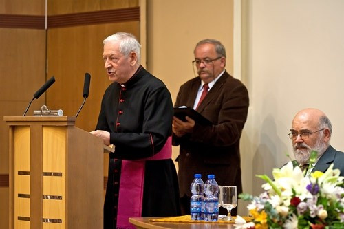 Dr. Márfi Gyula érsek köszöntötte az iskola dolgozóit és diákjait, az új hallgatók figyelmét pedig különösen felhívta arra, hogy ők egy világnézetileg elkötelezett intézmény tanulói lettek döntésükkel.