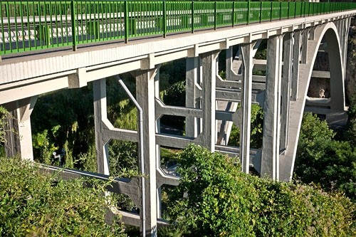 A Völgyhidat 1937-ben adták át Folly Róbert tervei alapján, majd az 1945-ben történt megrongálódása után faszerkezettel javították. Reprezentatív híddá csupán 1947-ben alakították át. A '90-es években követték el azt a nagy hibát, hogy műgyanta habarccsal próbálták megvédeni, de ez többet ártott, mint használt. Egyébként ezt a technikát ekkor más országokban is alkalmazták, melynek kárát csak most lehet érzékelni.