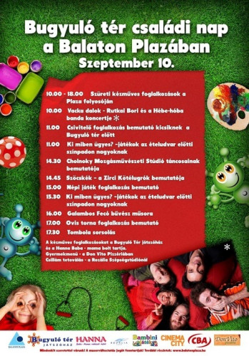 Bugyuló tér családi napot tartanak a Balaton Plazában szeptember 10-én, szombaton 10 és 18 óra között.