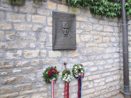 Latinovits Zoltán emlékére a tárlat megnyitója után Oberfrank Pál színházigazgató, Porga Gyula polgármester és Kovács Norbert, a Veszprém Megyei Közgyűlés alelnöke koszorút helyeztek el a „színészkirály” emlékművénél.