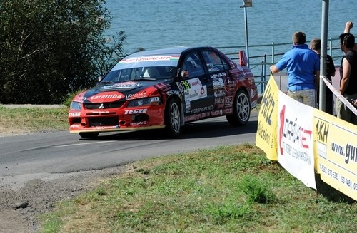 Aschenbrenner György és Pikó Zsuzsa Mitsubishi Lancer Evo IX autójukkal az Árpádtető-Magyarhertelend gyorsaságin (fotó: MTI)