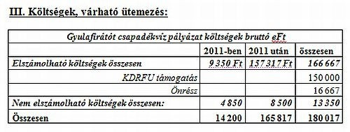 A támogatási szerződés aláírásáig, illetve az első kifizetési kérelemig az önkormányzatnak az elszámolható költségeket is meg kell előlegeznie, ami 2011-ben a nem elszámolható költségekkel együtt 14 200 000 Ft.