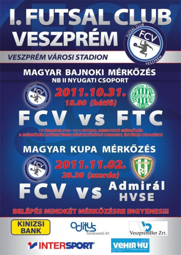 Nehéz mérkőzések elé néz az 1. Futsal Club Veszprém csapata október 30-én és november 2-án – érkezik a Ferencváros és a Szombathely alakulata.