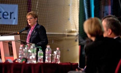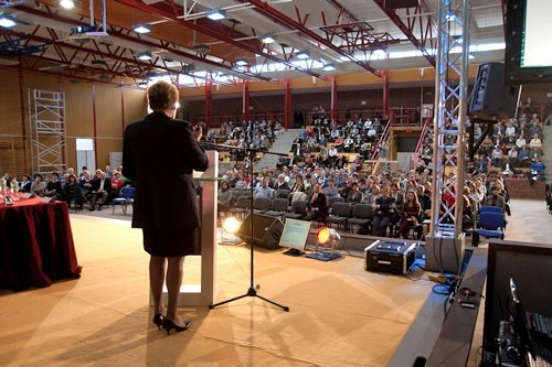 A jelenlévőkkel dr. Hoffmann Rózsa, oktatásért felelős államtitkár ismertette az egyéves társadalmi vitát követő törvény tervezet legfontosabb részleteit, megjegyezve, rövidesen a parlament elé kerül a dokumentum. A végéhez közeledő országjáró fórum célja, hogy az érintettek választ kapjanak azokra a dilemmáikra, amik felszínre törnek egy ilyen nagy rendszer átalakításakor. – Egy másfél éve tartó előkészítő munka ér véget. A mai összejövetelen alkalmas arra, hogy sok félreértést tisztázzunk – húzta alá az államtitkár, majd a törvény tervezet több pontját részletezte. Mint mondta, a legfontosabb cél az, hogy egy olyan minőségi iskolarendszer épüljön ki, amely magas minőségben biztosítja azt a megújulást, amelyre a társadalom tavaly áprilisban igent mondott. – Magyarország virágzó jövőjét az iskolákban kell előkészíteni, erre az 1993-ban megalkotott, nagyon sokszor módosított, elég sok sebből vérző törvény már nem alkalmas – mutatott rá dr. Hoffmann Rózsa.