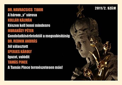 – Megpróbáljuk megmutatni, hogy mitől Veszprém Veszprém. Melyek azok a jellemzők, sajátosságok, amitől más ez a város, mint a többi. A kultúra, az oktatás, a történelem, a katolikus egyház és a politika irányából kívántuk bemutatni a „veszprémikumot”. A közéleti tartalmú Arcvonal rovat mellett a többiben – Képmás, Helyi érték – a szokásosnak mondható kulturális tartalmú interjúk, portrék jelennek meg. Ezek közül ki kell emelni a Kollár Kálmánnal és Muraközy Péterrel készült két nagy írást, valamint Eperjes Károly színházról vallott gondolatait. Sokat lehet tanulni a „Pro Urbe” díjasaink – de Jonge Jánosné, dr. Rednik András, Eisenbeck István – életről, hivatásról szóló interjúiból is. Nagy élményt nyújt gasztronómiai kalandozásunk az Oliva étterem séfjével, Tornyos Balázzsal és a Tamás Pince munkatársaival. Új sorozatot indítottunk útjára, ahol a város közismert mecénásait akarjuk bemutatni. Elsőként dr. Markovszky Györggyel beszélgettünk. Érdemes olvasni a Portrét, de érdemes a képi világában is elmerülni. Ahol lehetett, fotógalériát készítettünk, és videós melléklettel láttuk el a cikket. Külön köszönet Szaksz Balázsnak az oldal tördeléséért, szerkesztéséért, valamint Kis Sándornak a képi világ megformálásáért.