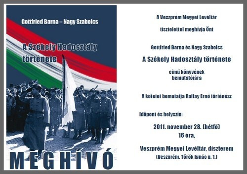 Gottfried Barna és Nagy Szabolcs, A Székely Hadosztály története című könyvét mutatják be hétfőn délután a Veszprém Megyei Levéltárban.