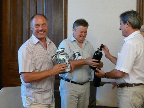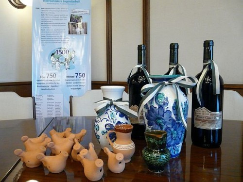 Végül a német fiatalok ajándékot nyújtottak át a megye képviselőinek, megköszönve a vendéglátást, majd Lasztovicza Jenő adta át a megye ajándékait Uwe Götznek és a jelenlévő magyar és német fiataloknak.
