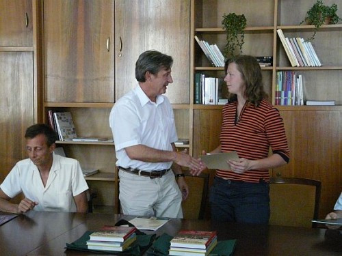 Lasztovicza Jenő átnyújtja az oklevelet Orbán Évának