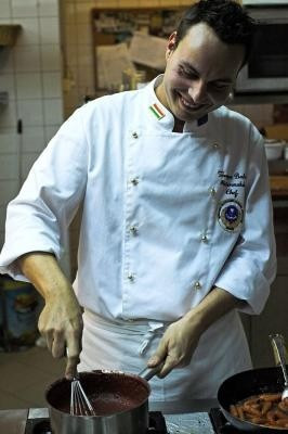– Magyarán: zöldségszobrászat. Ma már ritkábban faragok zöldségeket, de néha igen jól jön a díszítésnél. Ezután kerültem Balatonfüredre, a Hotel Annabellába, Por Lajos séf mellé. Az ott töltött év mindenképpen meghatározó volt, itt szerettem végérvényesen a szakmámba, és tanultam meg a hidegkonyha minden csínját-bínját. Dolgoztam még a Hotel Veszprémben, konyhafőnökként Felsőörsön a Hamuház Fogadóban és a veszprémi Café Piazzában. Kilenc éve – 2002 óta vagyok az Olíva Étteremben, nyolc éve konyhafőnökként. Négy éve pedig megvolt a sikeres mestervizsgám is…
