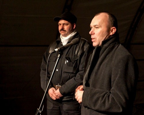 Ezt követően Porga Gyula polgármester lépett a mikrofonhoz, aki egy kéményseprő társaságában jelent meg a színpadon, remélve, hogy szerencsét hoz nekünk az új évhez.