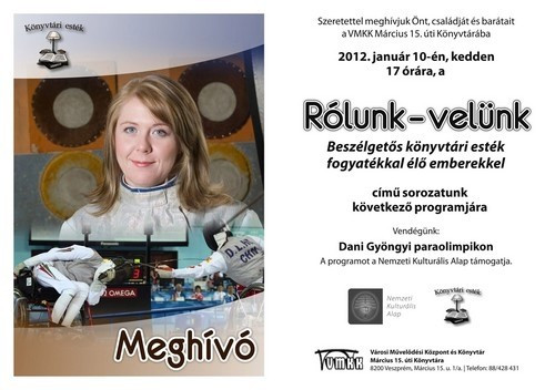 Dani Gyöngyi paraolimpikonnal beszélgetnek a Március 15. úti Klubkönyvtárban január 10-én, kedden a Rólunk-velük sorozat részeként.